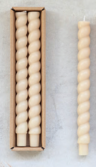 Enhance the ambiance of any space with our 10" Unscented Twisted Taper Candle. Made with premium quality wax, it provides a long 10-hour burn time. The elegant twisted design adds a touch of sophistication to any room. Comes in a protective box for easy storage and transport.