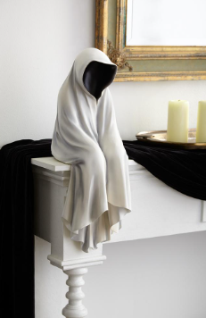 Introducing the 22.5" Ghost White Black, a spooktacular addition to your Halloween décor. Made of durable materials, this 22.5" sitting ghost will add a touch of ghostly charm to any space. Its size makes it perfect for tabletop displays or as a haunting accent on a mantle.