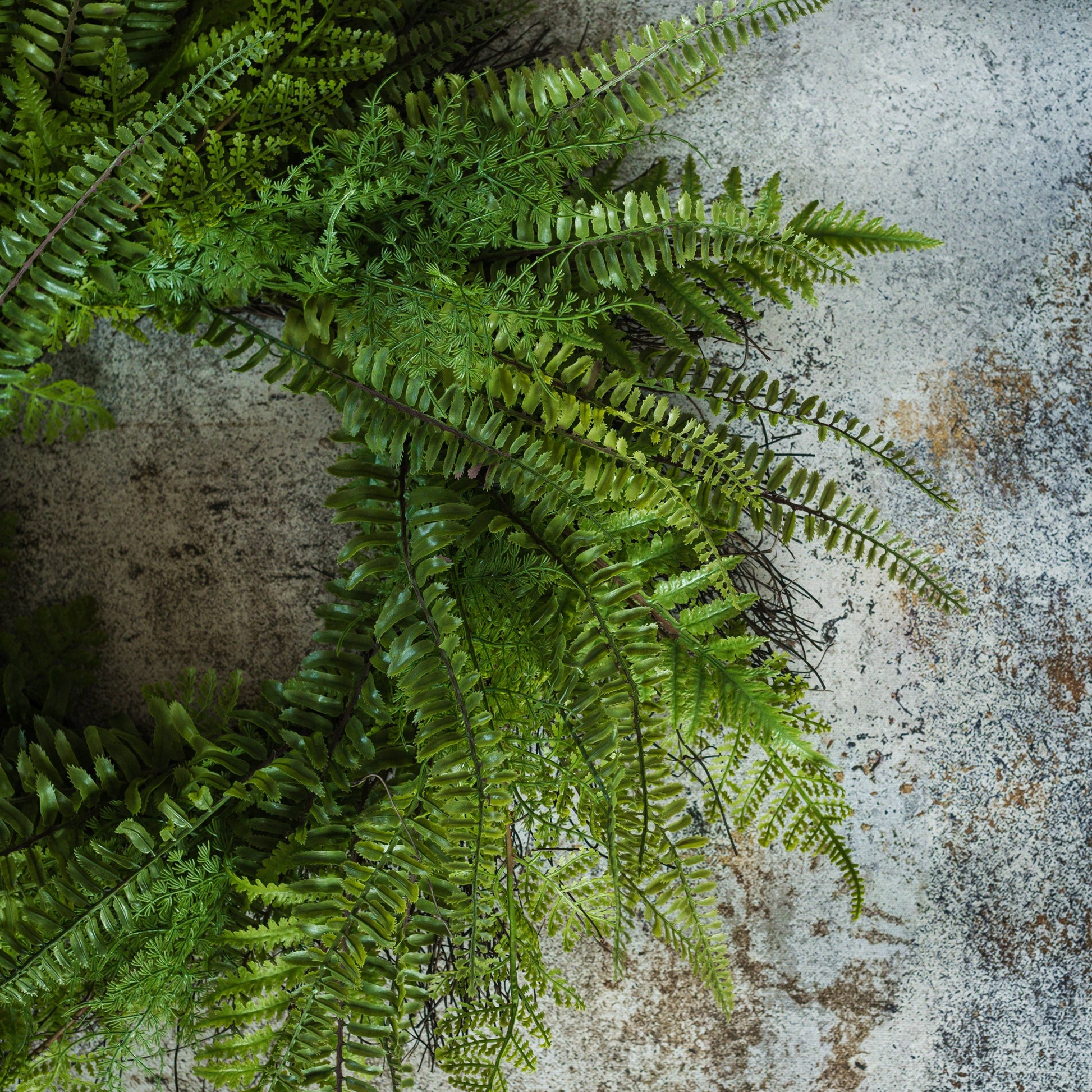 Bring natural elegance to your space with this 26" Lacey Fern Wreath. Featuring delicate, feathery fern fronds arranged in a full, lush design, this wreath adds a fresh botanical touch to any room. Perfect for year-round décor on doors, walls, or as a stunning centerpiece accent. The generous 26" diameter makes a bold statement while maintaining an airy, sophisticated aesthetic. Ideal for creating a calming, nature-inspired atmosphere in your home or salon.
