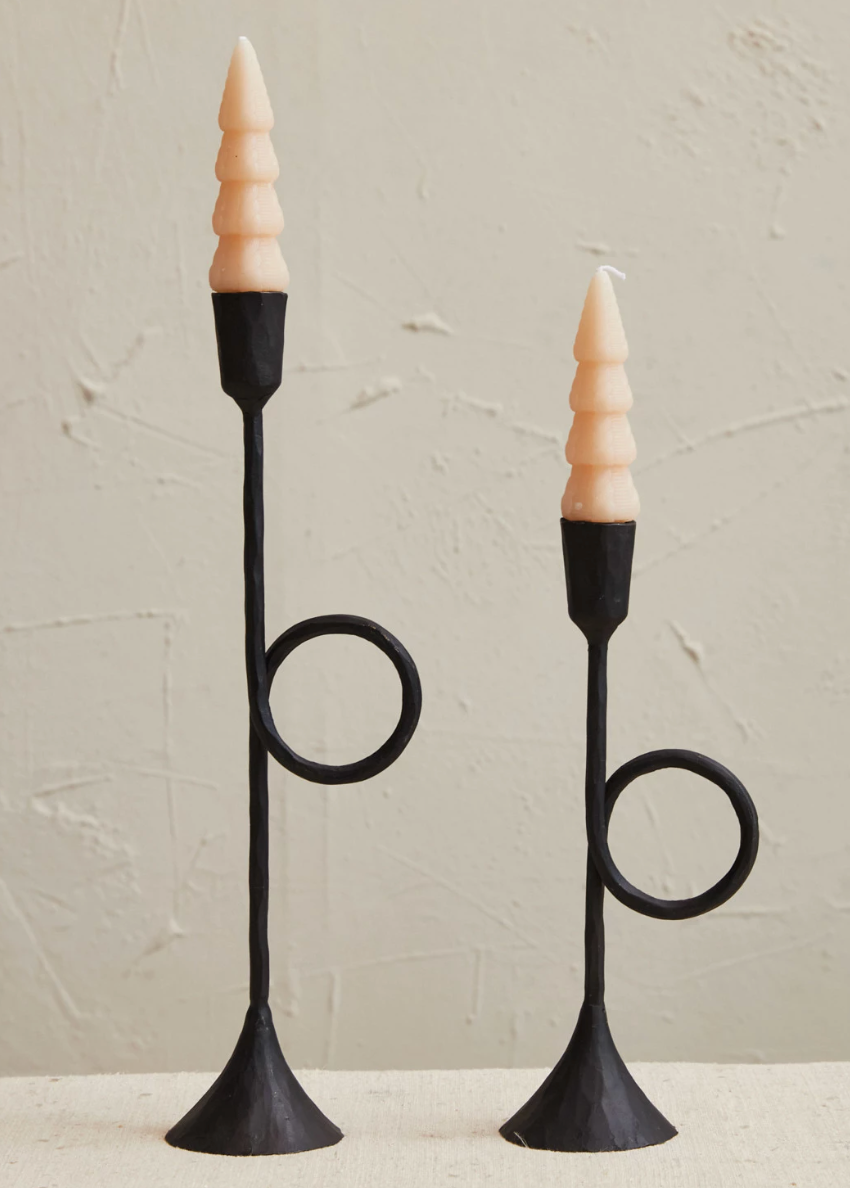Hand-Forged Cast Iron Taper Holder w/ Handle, Black