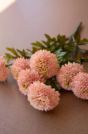 Bundle of 7 Artificial Light Pink Ball Dahlias