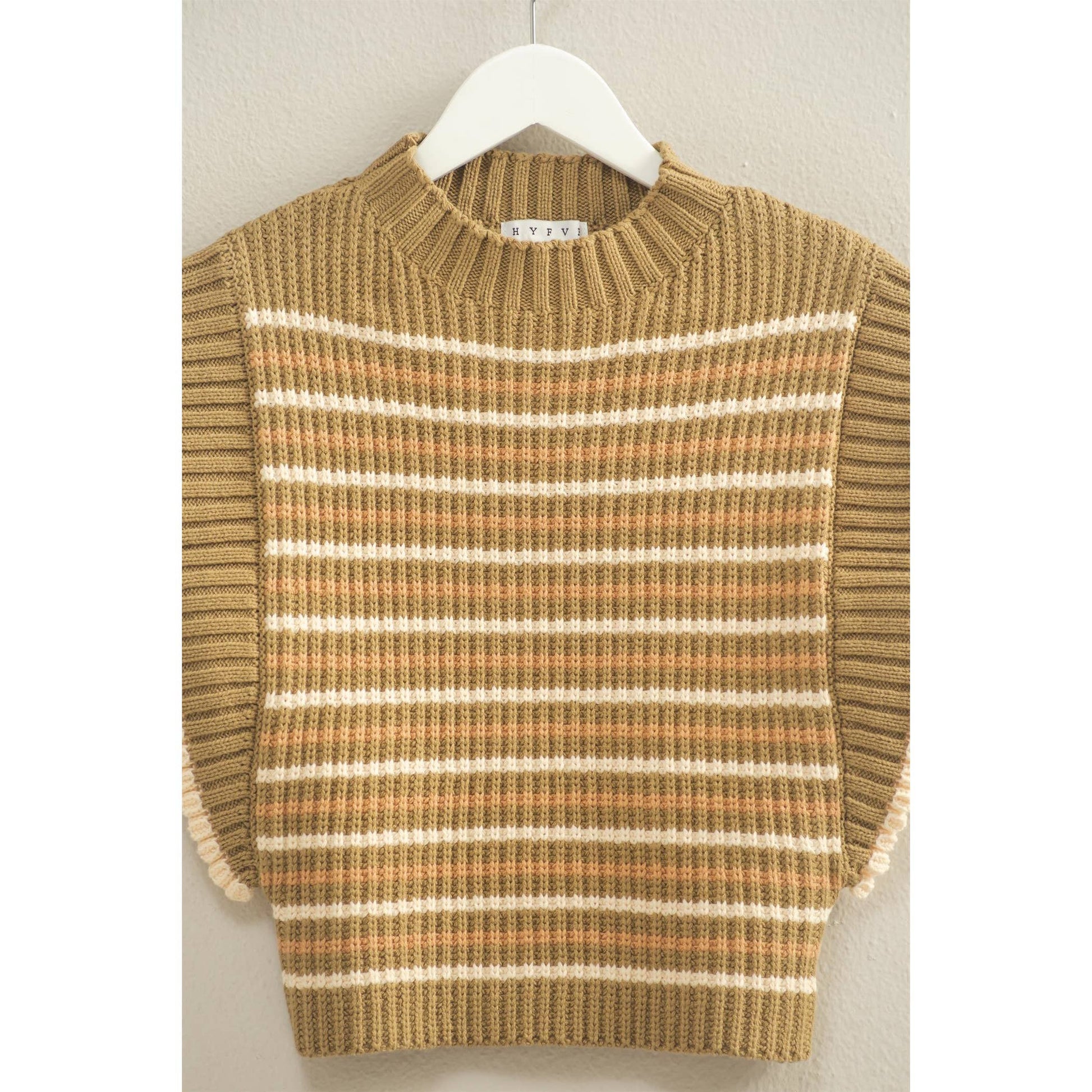 Chic Striped Mock Neck Sleeveless Sweater Vest