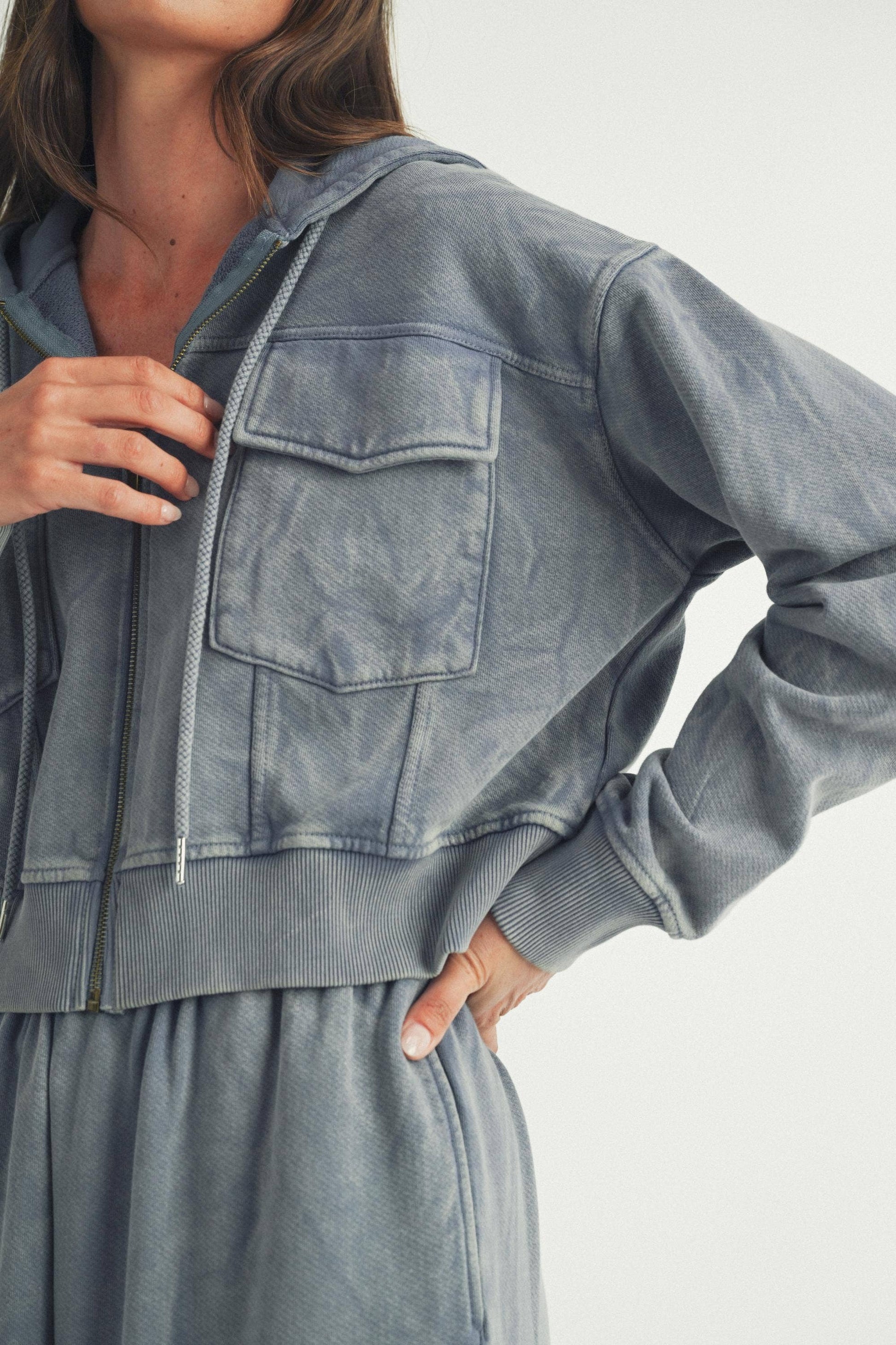 - Cropped zip-up hoodie with a relaxed, slouchy silhouette
