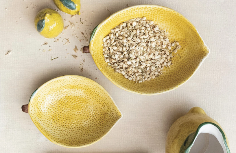 Hand-Painted Stoneware Lemon Shaped Bowls, Yellow, Set of 2