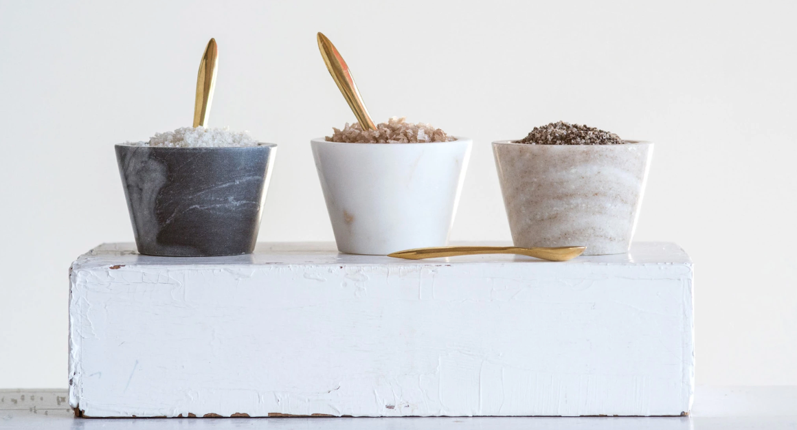 Quickly and easily reach for your most used spices with these charming small bowls. They come with beautiful brass spoons.