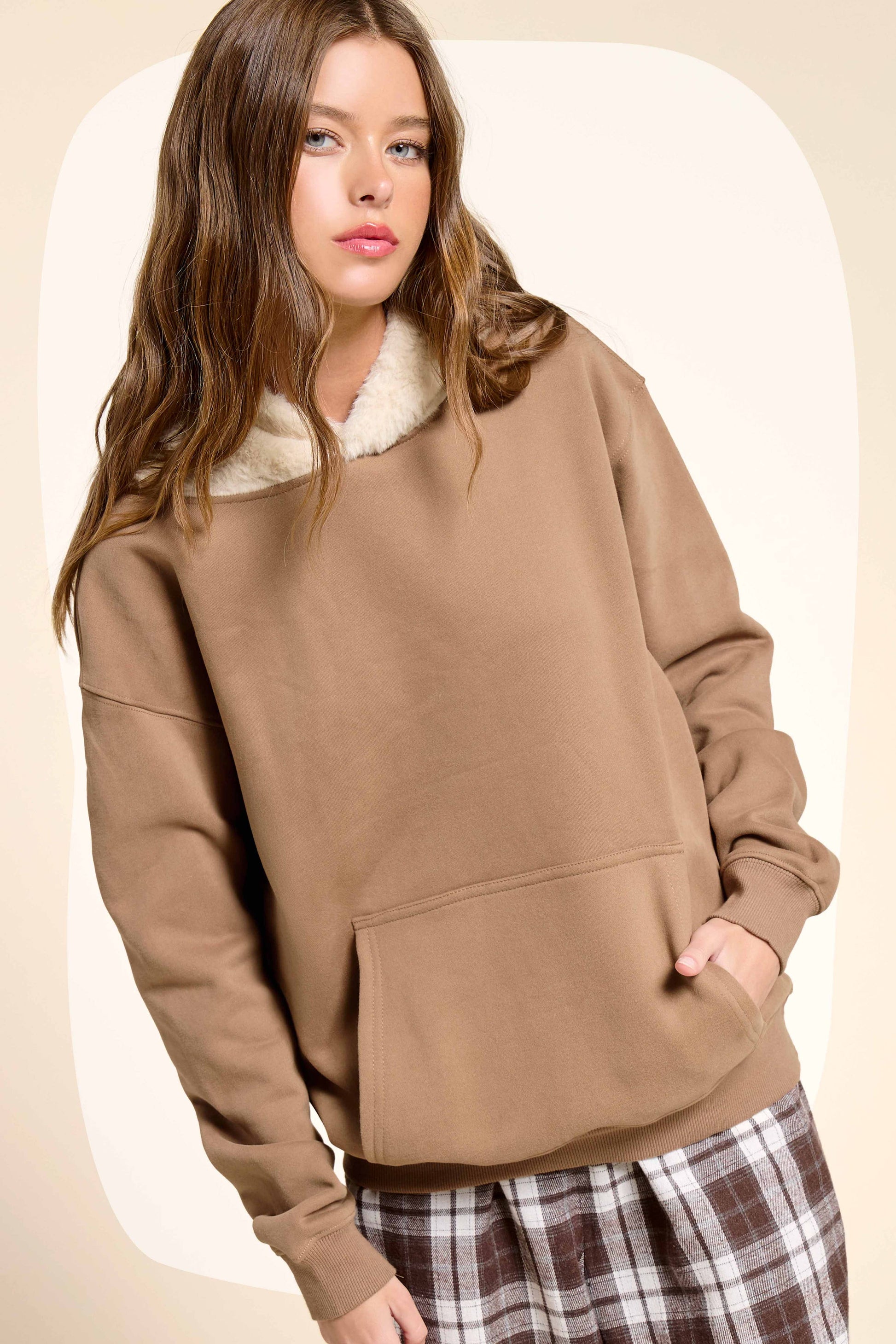 MDT7717-Cozy Fur Hooded Unisex Pullover Sweatshirt