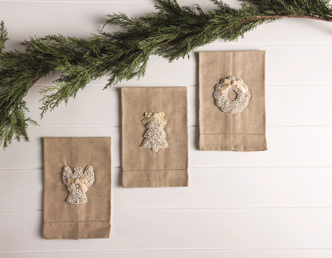 Luxurious pearl-toned towel crafted with angelic elegance, perfect for holiday décor and everyday use. Features a sophisticated finish that complements any Kitchen or seasonal display. Soft, durable, and versatile enough to work as both a functional towel and decorative accent piece.
