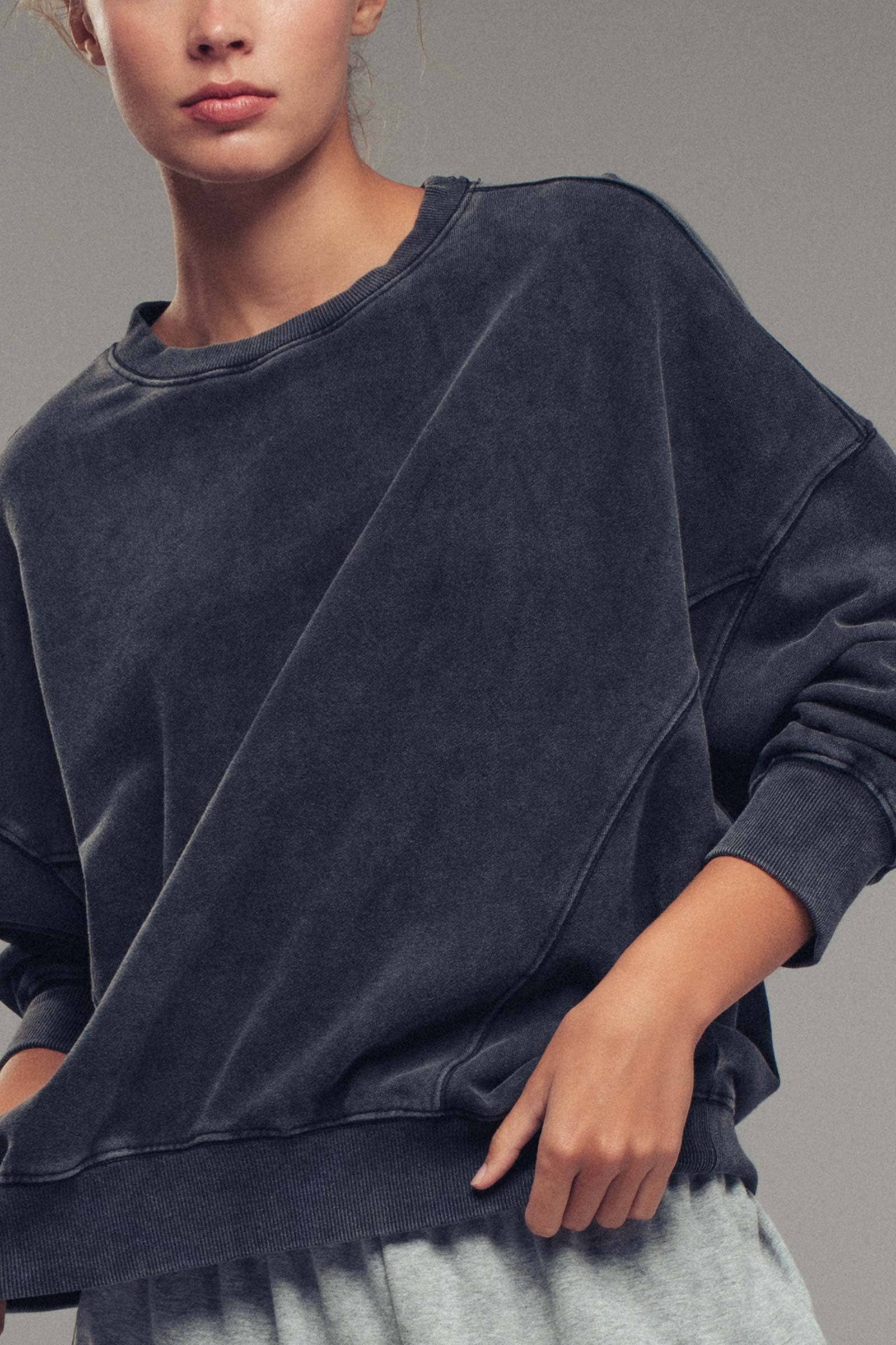 This garment-washed sweatshirt delivers a lived-in, vintage feel with soft pigment fading. Designed with an oversized fit, drop shoulders, and ribbed trim, it's the perfect throw-on piece for laid-back days or layered casual looks.