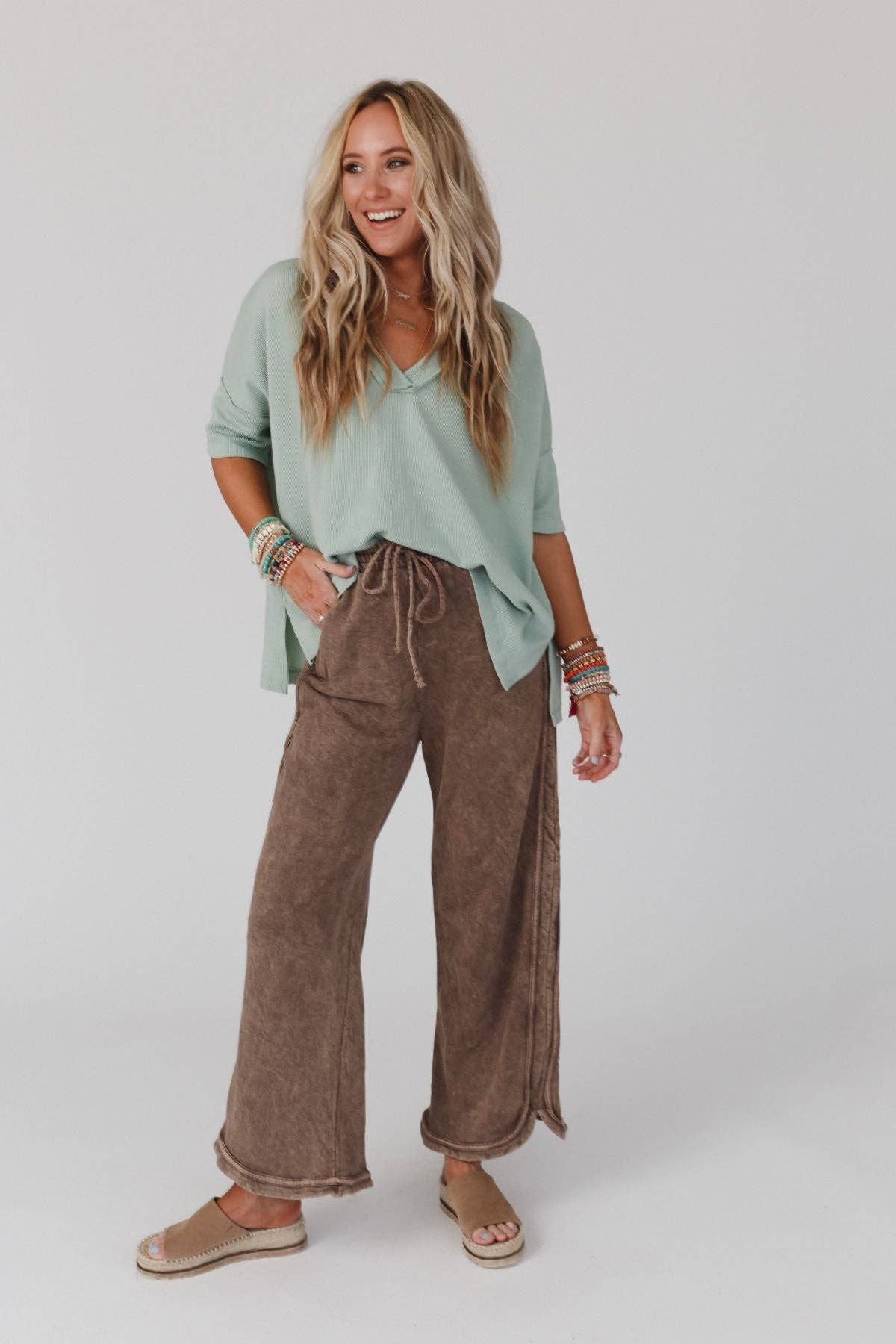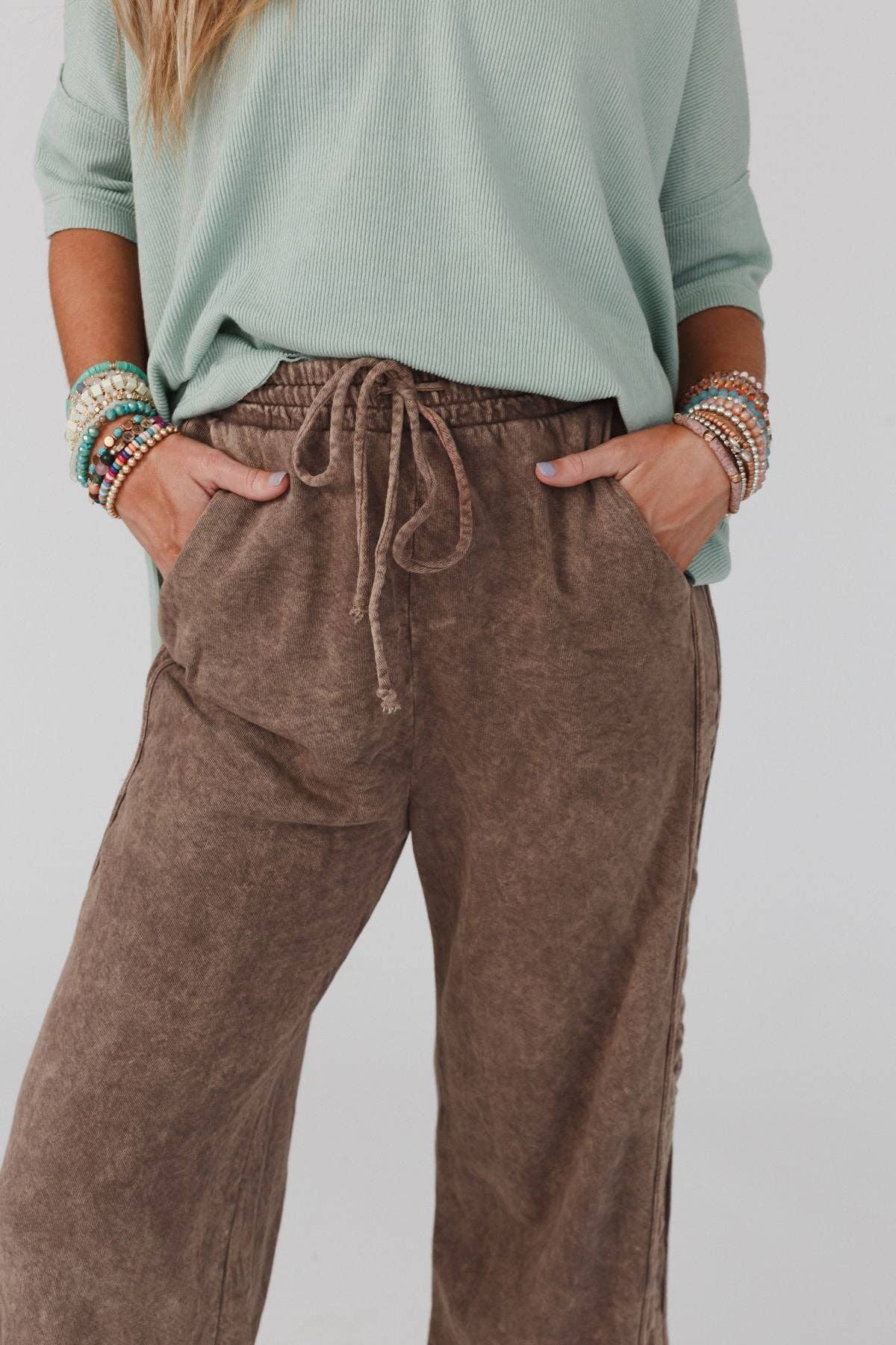 Comfy and cozy all in one! our full length wide leg lounge pant with drawstring waist and pockets will be your closet fave for pairing with graphic tees for school pick up or running errands!