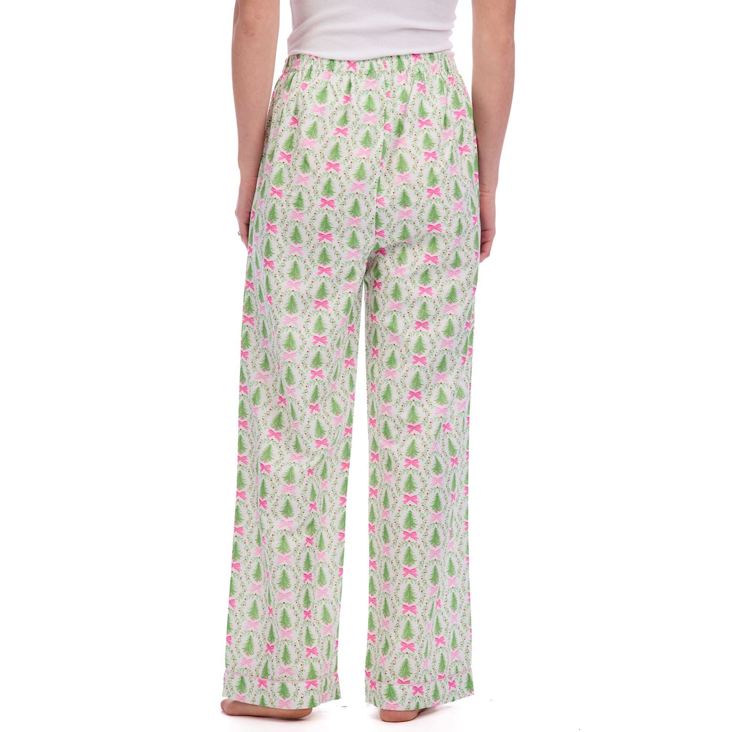 Polyester pajama pants feature piping detail and elasticated waist with bow tie.